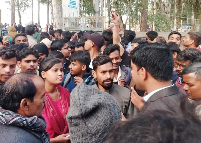 बिक्रमगंज के पटेल कॉलेज में निर्धारित शुल्क से अधिक शुल्क लेकर परीक्षा फार्म भरने को लेकर मंगलवार को छात्रों आक्रोश फूट पड़ा. आक्रोशित छात्रों ने पटेल कॉलेज गेट घुसिया खुर्द के समीप बिक्रमगंज-सासाराम मुख्य सड़क जाम कर दिया. करीब आधा घंटा सड़क जाम रहा. इस दौरान छात्र कॉलेज प्राचार्य के विरोध नारे लगा रहे थे.