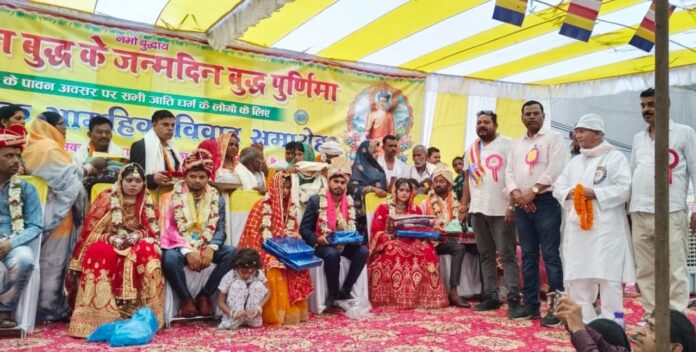 सासाराम शहर में बुद्ध पूर्णिमा के मौके पर गुरुवार को कुशवाहा सभा भवन में गुरुवार को आयोजित निःशुल्क सामूहिक विवाह समारोह में आठ वर-वधुओं ने सात फेरे लिए. परिणय सूत्र में बंधने वाले जोड़ों को प्रबुद्धजनों ने आशीर्वाद दिया. सुखद दाम्पत्य जीवन की शुभकामना दी गई.